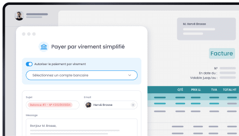 Récupérez plus rapidement de la trésorerie avec nos relances automatiques pour les paiements clients en retard. Faites-vous aussi payer directement depuis vos factures avec un lien permettant de faire un virement bancaire en quelques secondes. En plus c’est sécurisé !