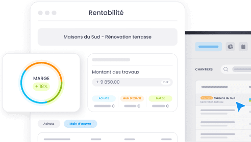 Calculez très simplement les marges de vos chantiers et suivez l’évolution de votre chiffre d’affaire et objectifs annuels en un clin d’oeil.