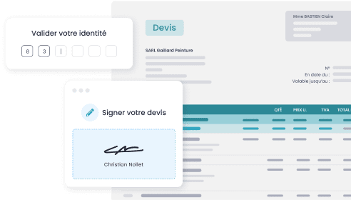 Faites signer vos devis plus rapidement et à distance, sans contrainte ni déplacement. Offrez à vos clients une expérience fluide et moderne qu'ils adorent, tout en accélérant vos transactions.