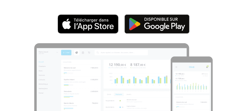 Car vos devis sont le meilleur moment pour convaincre un client, Obat vous permet de personnaliser simplement tous les documents à vos couleurs pour une présentation claire et professionnelle.