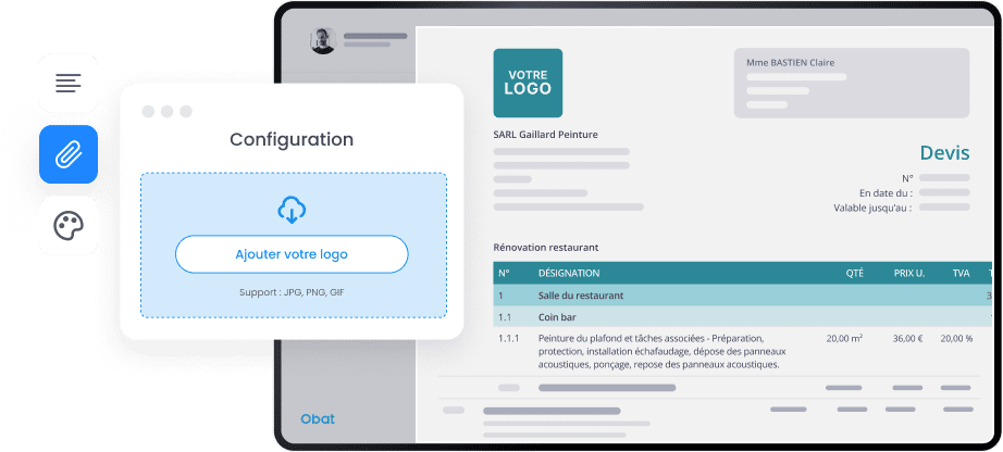 Répertoriez dans le logiciel les coûts de votre main d’œuvre et de vos différents ouvrages de peinture pour les ajouter facilement à vos documents : travaux de peinture extérieur ou intérieur, installation d’échafaudage, réparation, amélioration et préparation des supports (décapage et lissage de surface, dégraissage, décroutage, brossage, rebouchage de trous), traitement des façades, peinture de parquet, de carrelage ou de sol coulé, pose de revêtement mural ou de sol, travaux d’entretien…