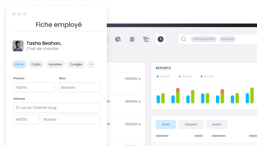 Le suivi de vos chantiers est accessible sur mobile, tablette et ordinateur afin de modifier tout élément en temps réel et consulter votre planning au domicile de vos clients, dans vos bureaux ou sur le lieu des travaux.