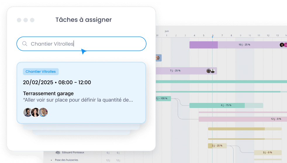 • Un planning puissant pour organiser vos chantiers et assigner les ressources